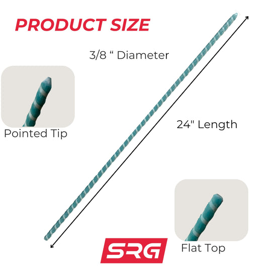 24” inch 3/8" Fiberglass Rebar Ground Stakes (20 pcs) Heavy Duty Never Rust Rebar Stakes for Concrete, Timber, Garden, Plant, Tents. Long Straight Stakes 3/8" Thick Ground Anchors with Pointed End.