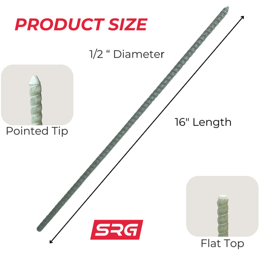 16” inch 1/2" Fiberglass Rebar Ground Stakes (20 pcs) Heavy Duty Never Rust Rebar Stakes for Concrete, Timber, Garden, Plant, Tent. Long Straight Stakes 1/2" Thickness Ground Anchors with Pointed End.